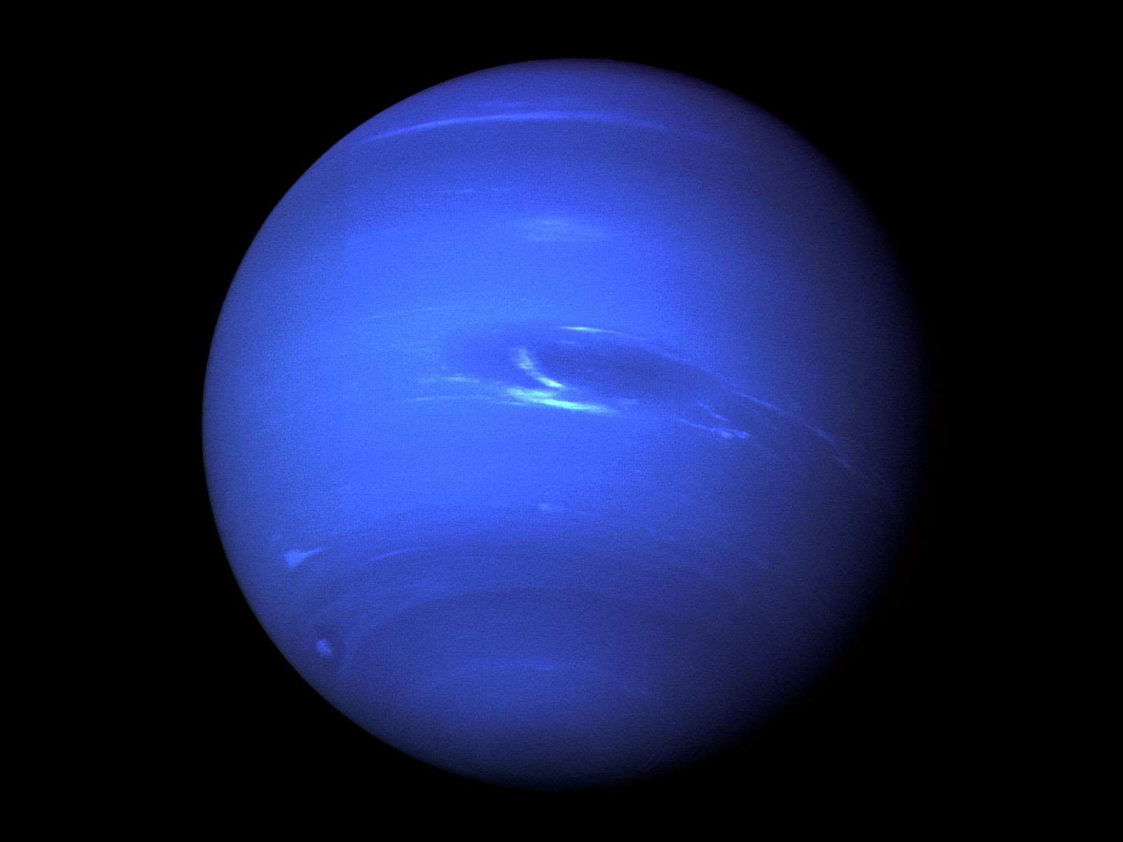 Je osmá, od Slunce nejvzdálenější planeta sluneční soustavy; řadí se mezi plynné obry.[9] S rovníkovým průměrem okolo 50 000 km spadá mezi menší plynné obry sluneční soustavy. Podobně jako u ostatních plynných obrů je možno přímo pozorovat pouze svrchní vrstvy atmosféry, ve kterých je vidět několik velkých temných skvrn, připomínajících skvrny v atmosféře Jupiteru.[9] Neptun má charakteristicky modrou barvu, která je zapříčiněna mj. přítomností většího množství metanu v atmosféře.
